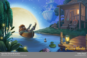 Disney’s Hidden Worlds was a hidden object game on social/mobile networks that had its own imaginative world and a cast of characters tasked with saving the world of Disney against the villainous Sez. I worked on several illustrations and a slew of character art for this entertaining game.
