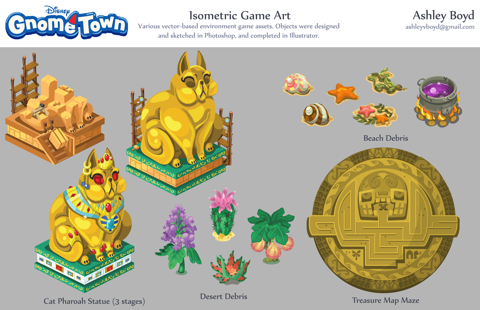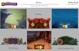 While I was at Disney, I also worked on character and game art for Disney’s GnomeTown, and UI for Disney’s Solitaire.