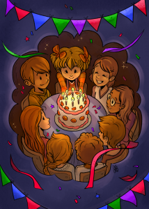 Illustration Tadpole MermaidsGood Vs EvilBirthday PartyCanaan in the SunRaining Cats and DogsBon OdoriTiny BlessingNight OwlsChrysalisSnow BunniesArrested Development Character MenageriePet ParadeHappy HalloweenSuitcase KittensCentauress GossipDragon on a Sakura Branch